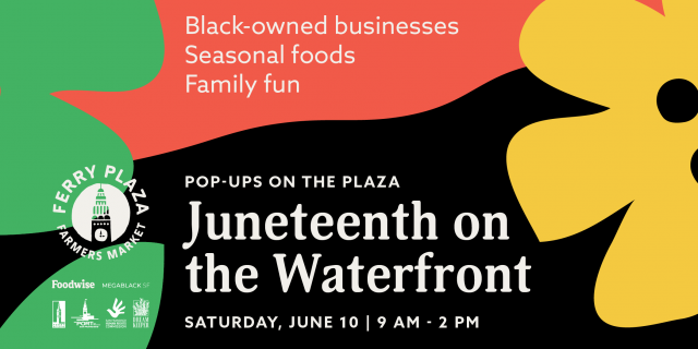 Celebrate local Black-owned businesses at the 3rd annual Juneteenth on the Waterfront on Saturday, June 10. Kick off a month of Juneteenth celebrations in San Francisco with a day of delicious food, community, and family fun at the Embarcadero Ferry Terminal Plaza (south of the Ferry Building) and Ferry Plaza Farmers Market. Entry is free and open to the public, and food and drinks will be available for purchase.